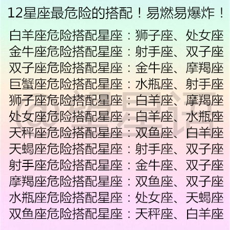 易燃易爆炸的星座配对(12星座最佳情侣配对)